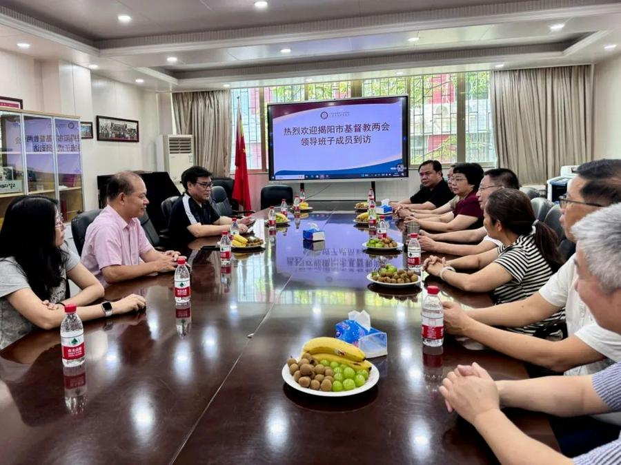 广东省基督教两会于2024年8月8日上午接待了由揭阳市基督教三自爱国会主席黄晓婷牧师带领的揭阳市基督教两会领导班子一行九人。广东省基督教三自爱国会主席樊宏恩牧师、省三自爱国会常务副主席兼广东协和神学院院长许洁平牧师、省基督教协会常务副会长雷玉明牧师及省基督教两会秘书长兼总干事林恩灵牧师等领导班子成员热情接待了访问团。