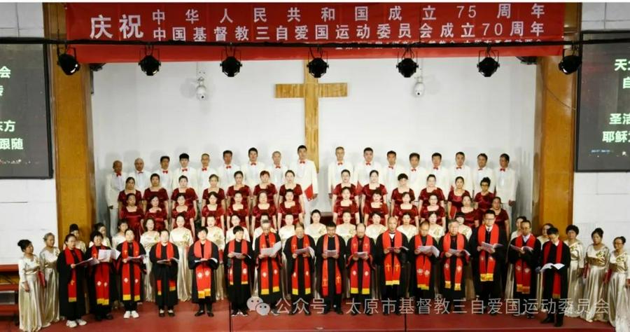 市基督教两会主任、会长张恩来牧师在致辞中强调,没有伟大的祖国,就没有国富民强,也就没有教会和平稳定的聚集崇拜环境,因此这次活动一方面是庆祝中华人民共和国成立75周年暨中国基督教三自爱国运动委员会成立70周年,另一方面是进一步加强与弘扬基督徒的爱国主义精神,以歌声礼赞祖国的繁荣昌盛,共同唱响基督徒的爱国情。他表示太原教会将继续坚定不移地高举爱国爱教旗帜,坚持与社会主义社会相适应,坚持我国基督教中国化方向,坚持不懈地进行自我完善、自我革新,为推进基督教中国化太原实践不断努力。