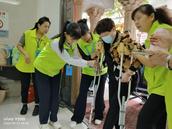 一抬头,远远可见五六个人穿着绿色的马甲,背后写着“让爱飞翔”几个大字,他们分站不同的台阶上,在人群中形成一道亮丽的风景线。当有人要进教堂时,他们带着温暖的微笑,热情迎接每位信徒的到来,看到老年信徒或者行动不便的弟兄姊妹时,他们便主动上前搀扶,小心翼翼地扶他们上台阶,进教会。