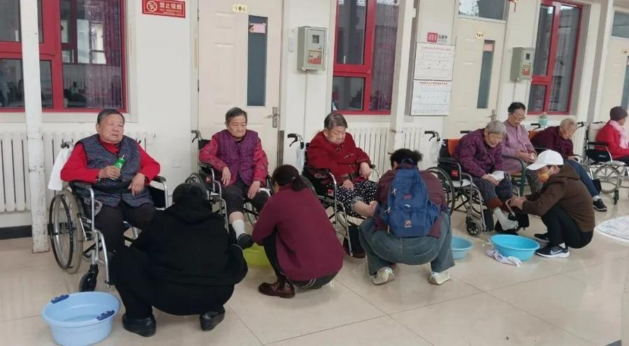 同日,市基督教前大营堂主任牧师温太浩、门头沟堂主任牧师尹林山带领同工前往爱德敬老院进行慰问活动。爱德敬老院院长刘宁花牧师热情接待各位同工并表示感谢。活动中,教牧同工为近40位老人洗脚,换上崭新的袜子,并且众人同唱《世界有你会更美好》。整个活动中,老人们笑逐颜开,现场始终洋溢着欢乐和温馨的氛围。