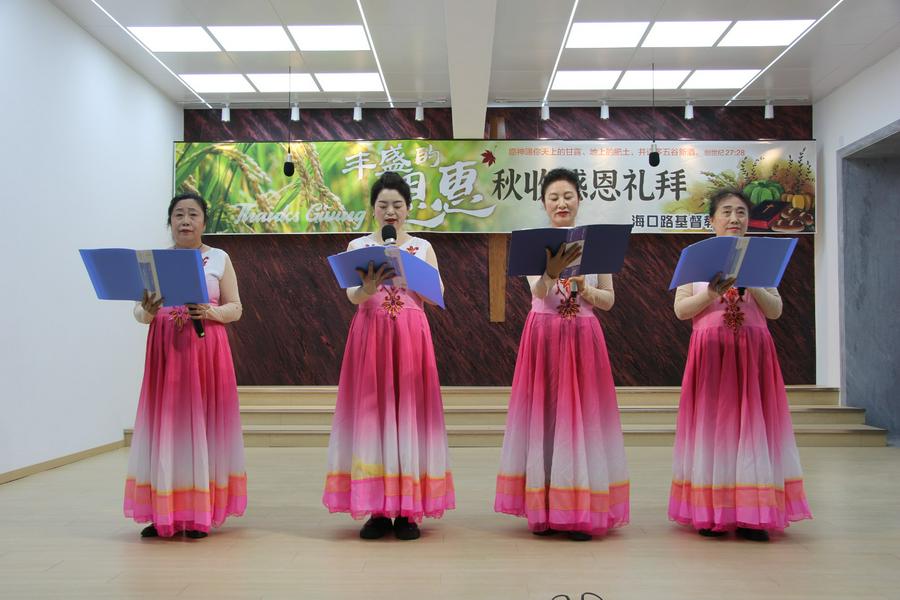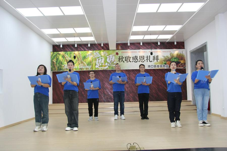 感恩节活动的第二个部分是赞美会。海口路基督教堂各个班组精心准备了丰富多彩的节目,有合唱,有诗朗诵,有舞蹈,有快板等等。今年的赞美会活动盛况空前,信徒们共庆感恩佳节,赞美会现场充满了虔诚与和谐的氛围,同时也展现了多元文化的和谐与包容。