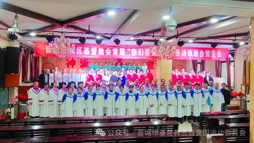 11月3日下午,山西省晋城市城区基督教会在城区基督教堂举办首届“圣诗班联合赞美会”,来自全区基督教堂点的七个圣诗班参加了联合赞美会,用歌声向上帝献上感恩与赞美。
