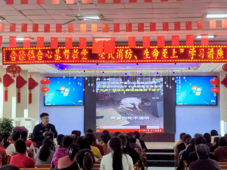 在这样的背景下,2024年11月10日,吉林省长春市农安县合隆镇合心基督教堂在主日崇拜聚会之后,组织了一场题为“全民消防 生命至上”的消防安全知识讲座,邀请了当地消防部门的王教官为大家进行讲解了“消防安全四个能力”、安全自查、隐患自除、火灾案例等内容。这场讲座正值东北冬季防火的重点时段,是一场非常及时的专业性普法和教育活动。讲座具有视频和实际操作结合、消防知识与教堂实际情况结合、消防专业知识与通俗易懂相结合、教堂与信徒个人家庭防火安全结合等四个特点。