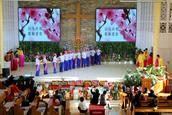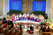 感恩节的赞美歌舞活动在一位德高望重的老牧师的为主证道和祝福后开始。本堂的邵红霞牧师主持赞美会,教堂负责人刘雪光牧师等教牧同工与会众一起参与感恩赞美活动。