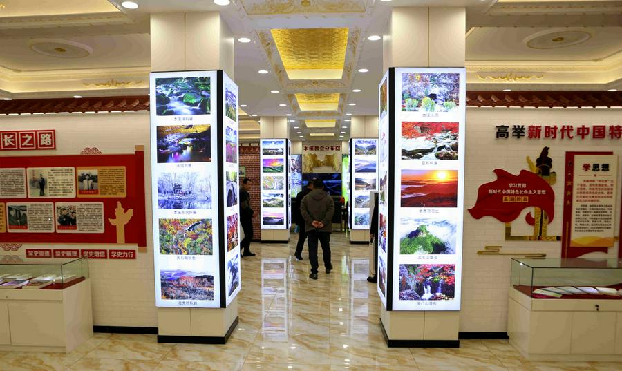 神佑中华,本溪是祖国的重要工业基地之一,也是具有山川秀丽、英雄辈出之地。这里最显眼的是多幅的本溪当地风光的彩色喷绘图片和文字介绍,他们深入挖掘本溪市的地域特色、经济发展成就和历史文化,如“城市风采”、“因为有你”等图片专栏,将这些元素融入到展厅爱国主义教育中,使展览内容更加贴近当地实际,更具说服力。参观者可以通过展览了解到本溪市在国家发展中的过去和现在,看到了作为辽宁省第五大城市本溪市的重要地位和贡献,增强对家乡的自豪感和归属感。