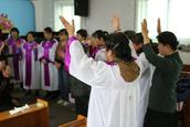 二十多年来,赵信焕弟兄为了神家的事情、为了传福音、为了弟兄姊妹,竭尽全力地无私奉献,手洁心清地专注于教会的牧养、发展和管理上,吃住都在教堂。炎热的夏季,他为信徒们安装了空调,座椅也是比较舒适的,诗班的同工有统一的服饰,冬季的风雪中,他和弟兄姊妹早早地就开始清扫教堂院内的积雪,保障主日聚会的正常进行。沈阳市基督教两会组织的活动,他们都积极主动地参加,社区的慈善公益活动教会也积极响应。即使在身患疾病的时候他也念念不忘教会的事工,牵挂着弟兄姊妹,待病情好转的时候,就拄着手杖参加聚会,敬拜赞美。这里的同工同道和弟兄姊妹也关心他们的“头羊”的身体状况,聚会前,我看到时不时的有会众来探望还在修养中的赵信焕弟兄。