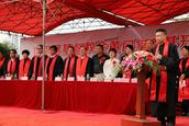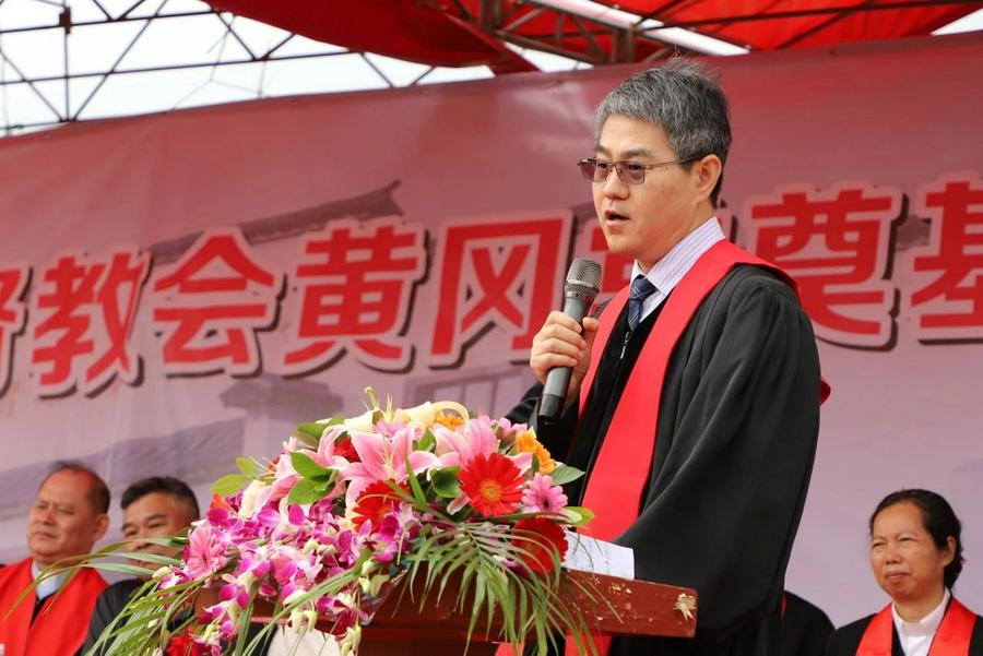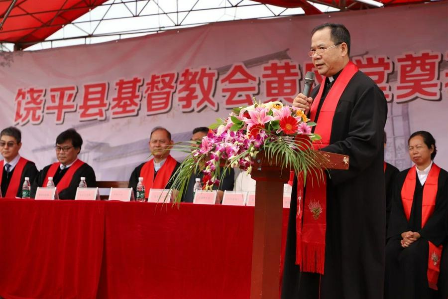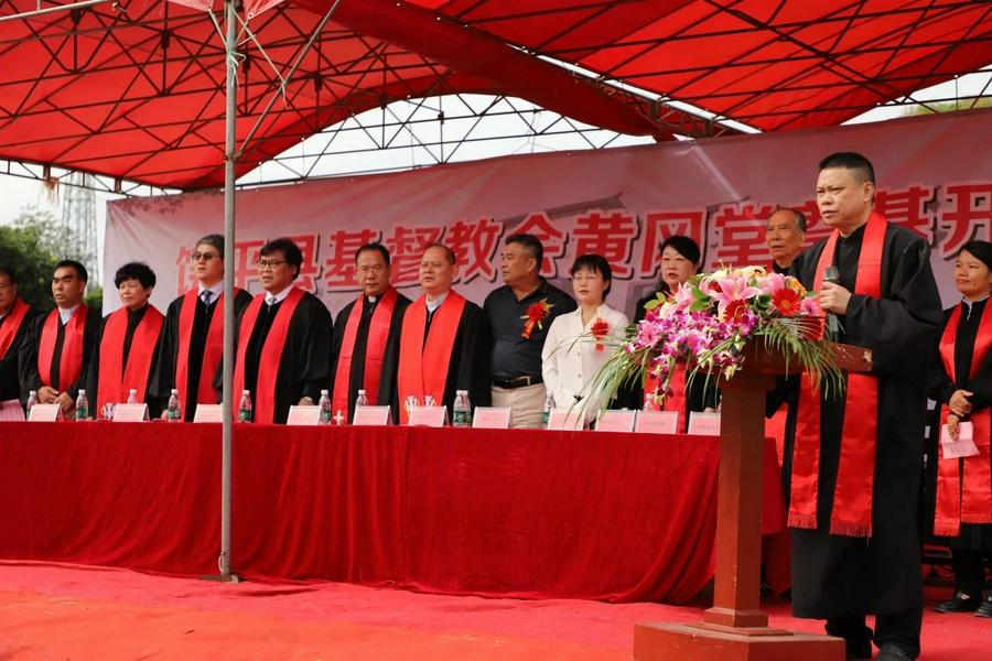 奠基典礼由刘恭喜牧师主持,郭云牧师、陈贤烁牧师分别代表省基督教两会和潮州市基督教两会在典礼上讲话。郭牧师对各级有关部门给予黄冈堂新堂规划建设的大力支持和各地教会同工同道的关心、代祷和奉献表示衷心的感谢。同时,他指出,黄冈堂的顺利奠基建设,既是党和政府宗教信仰自由政策的体现,也是基督教与饶平经济、文化、社会融合发展的标志。希望黄冈新堂融入潮州文化、客家文化、红色文化、海洋文化的精髓,成为文化交流、增强文化自信和推进基督教中国化的平台。未来黄岗堂应该成为促进社会和谐、民族团结的重要力量,更好地弘扬饶平教会服务社会、荣神益人传统,在推进基督教中国化方面做出务实的作为,积极引导信徒与社会主义社会相适应,爱党爱国爱社会主义,在饶平经济社会发展和侨乡对外交往中,树立我们饶平基督教的美好形象。