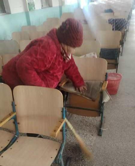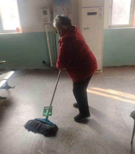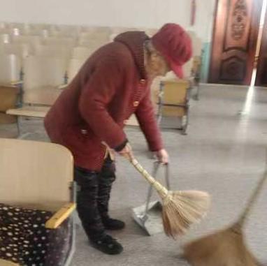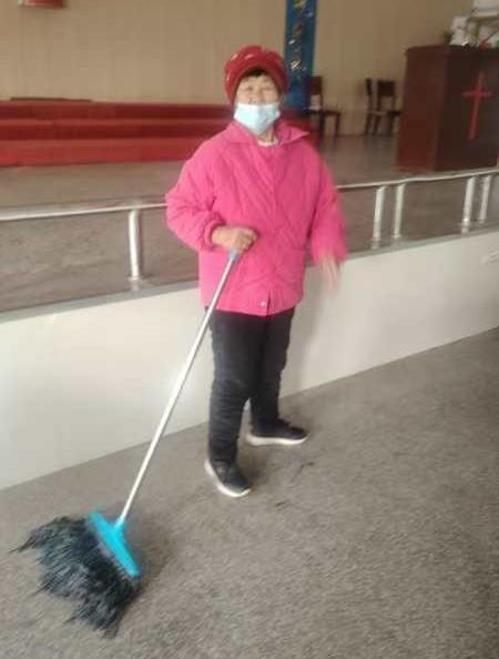 冬天,寒风凛冽,但这些老人们依然准时出现在教堂。他们穿着厚厚的棉衣,戴着帽子和手套,脸颊被寒风吹得通红,眼神中却充满坚定。擦板凳的徐久连老姊妹,尽管手指有些僵硬,却依然认真地擦拭着每一个角落。她会用热水将抹布浸湿,既能更好地去除污渍,又能让双手在寒冷的冬天感受到一丝温暖。拖地的赵则英老姊妹则会在拖地之前,先在地面上撒一些盐,防止地面结冰滑倒。他们拖着地的动作虽然有些吃力,但却充满力量。