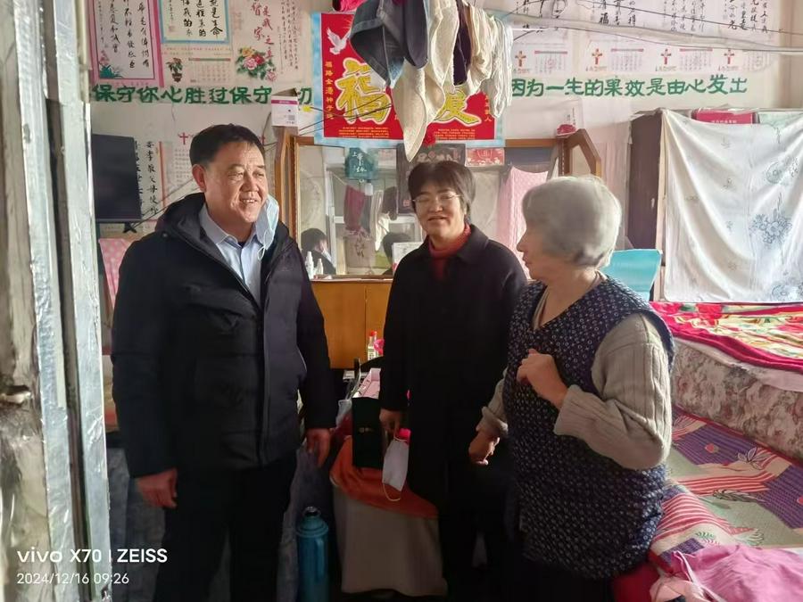 走访慰问过程中,蓬莱教会长老李永前与同工一行人先后来到教会帮扶对象、信徒困难家庭家中,为他们送去生活必需慰问品。每到一户,都与他们亲切交谈,在拉家常中详细了解他们的身体状况、家庭情况、收入来源及生活中遇到的实际困难;嘱咐他们天冷做好身体保暖,保重身体的同时也要注意用火用电安全;鼓励他们要保持乐观向上、敢于面对困境的良好心态,积极面对生活中的困难,并送去新春的祝福。在入户走访老同工时,教会同工针对他们的生活、居住环境进行全面检查,帮助他们查询水、电、燃气使用情况,检查电线是否有老化、破损现象,插座开关是否正常工作;并耐心地向老人讲解水电气安全知识,提醒他们使用完家用电器及时关闭,以实际行动传递主爱的温暖。