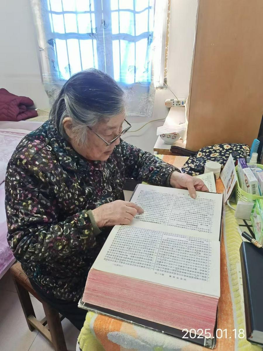 碧玉姐妹虽然现在已是耄耋之年,无法参加教堂聚会点的聚会,但她爱主、渴慕主话语的心未曾改变。她坚持每天清晨5:00准时灵修,读经祷告亲近神。之后还用微信给许多弟兄姐妹发早安金句以及经文祷告的分享。每个礼拜天上午在家聆听福州花巷堂的线上礼拜聚会。她也时常惦记关心着,教会以及聚会点的各项事工发展的情况。