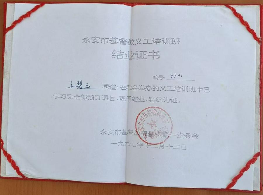 为了更好地侍奉主,王姊妹在62岁时参加了第一期三年义工培训班,并且顺利完成了全部学业。