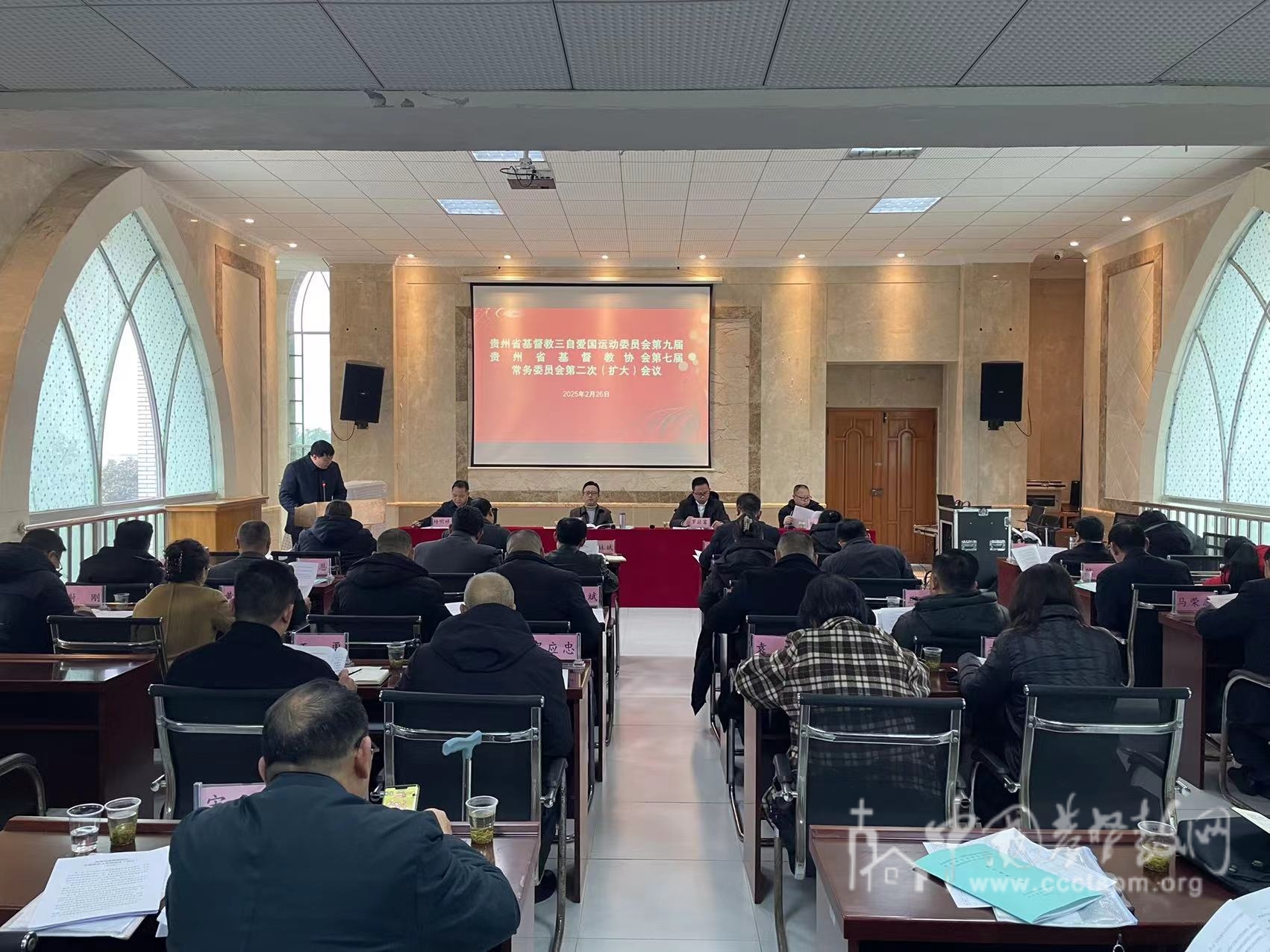 2025年2月26日上午,贵州省基督教两会本届常务委员会第二次(扩大)会议在贵州圣经学校召开,省基督教两会本届常务委员参会,非常务委员的副秘书长、副总干事和全体监事会成员应邀列席本次会议,省民宗委宗教业务处室相关负责人到会指导。