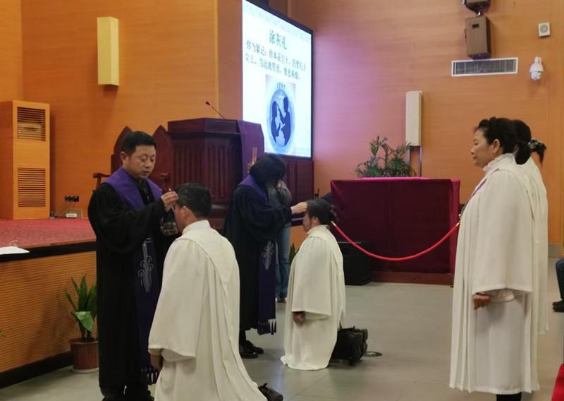 郝晓丽牧师证道结束后,主任牧师李鹏飞主礼了涂灰礼。他先带领会众进行了省察: