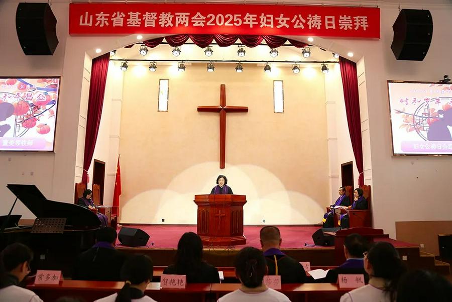 省基督教三自爱国运动委员会主任、山东神学院院长董美琴牧师介绍了妇女公祷日的背景和此次公祷日崇拜的主题与代祷内容,呼吁女性信徒以温柔坚韧的品格传递和平信息,在家庭中营造和睦氛围,在教会中担当服侍职责,在社会中彰显爱心行动。省基督教协会副会长、妇女和青年事工委员会主任夏伶珺牧师以“时和岁丰 和平昌盛”为主题展开证道,劝勉会众弘扬基督教博爱精神,助力社会和谐发展。