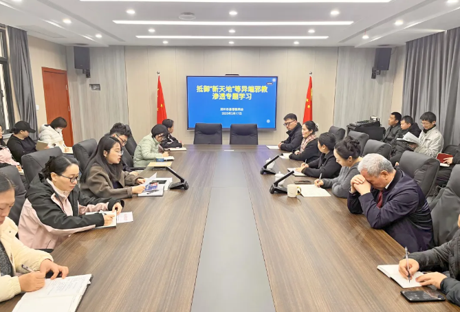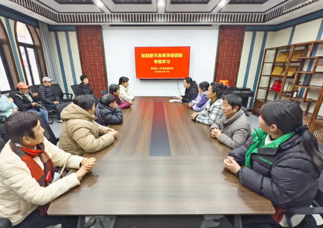 3月12日,市基督教两会向各县(市)基督教两会与市区圣餐点下发《关于抵御“新天地”等异端邪教渗透的通知》,要求各地认真组织开展学习宣传活动,揭批“新天地”等异端邪教。市基督教两会第一时间组织全体教职员工开展了专题学习,筑牢抵御异端邪教渗透的第一道教职人员防线。