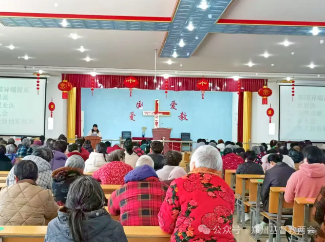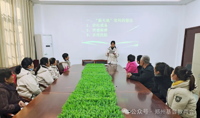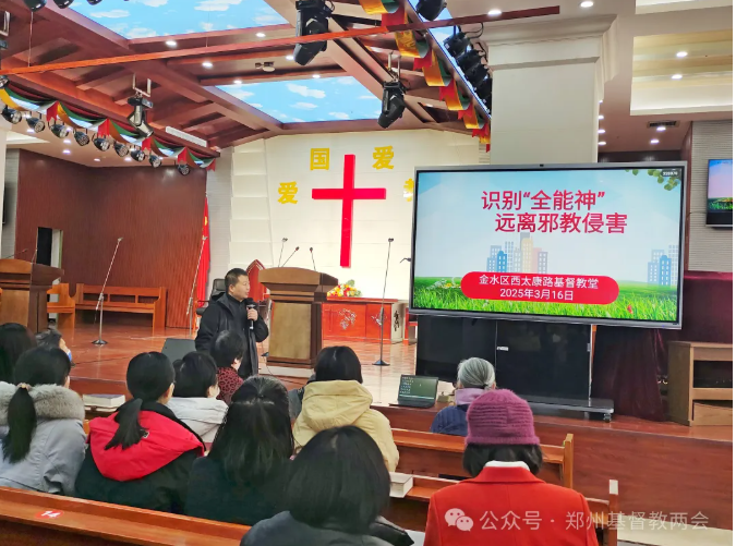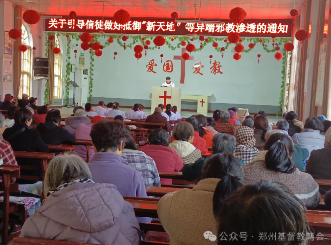 在市基督教两会的统一部署下,全市场所根据两会下发的学习材料、教育视频等文件文档,并结合场所实际,充分利用活动时间组织教职人员、民管会、唱诗班、服务组等骨干成员开展专题学习,系统掌握“新天地”等异端邪教的起源、运作模式、活动特点、常用话术等主要内容。各场所认真排查涉“新天地”等异端邪教情况,并及时上报两会,以进行综合研判,进而采取有针对性的防范措施。各场所也通过采取集中学习、专题讲道、信徒座谈、加强管理等形式教育引导广大信徒坚决抵制“新天地”等异端邪教渗透。