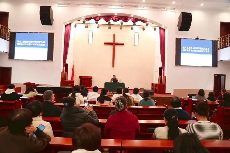 罗琤教授以《境内主流教会和神学院校在抵御邪教和非法宗教方面面临的挑战》为题,采取图文并茂的方式,结合具体案例详细介绍了当前异端邪教的活动特点、危害及进行非法宗教活动的手段,总结了神学院校有效抵御异端邪教的经验做法,提出了建设性建议,为大家进行了一场生动的反邪教教育。