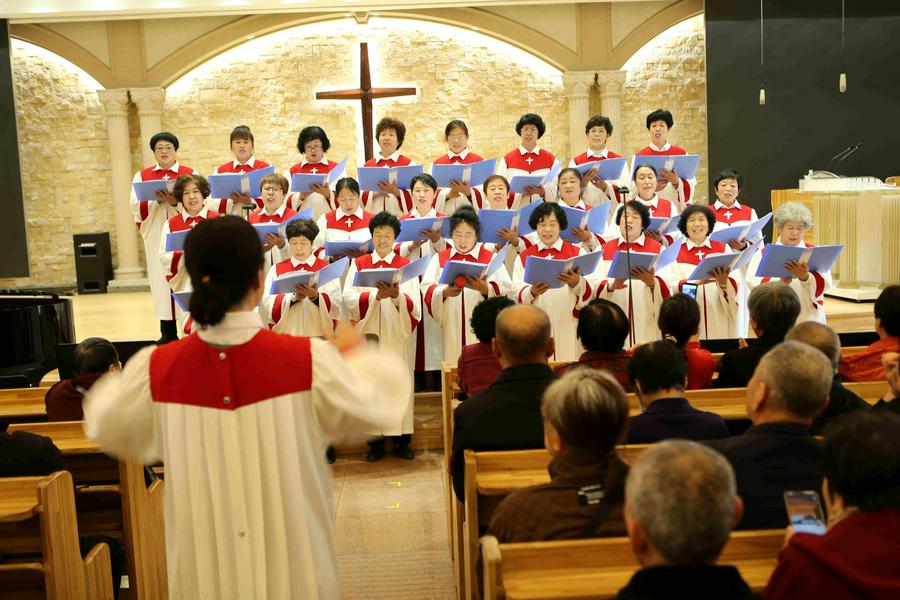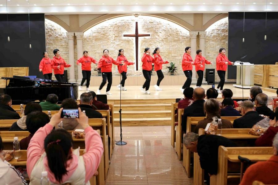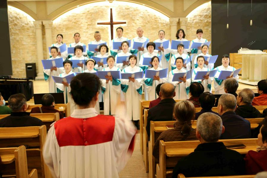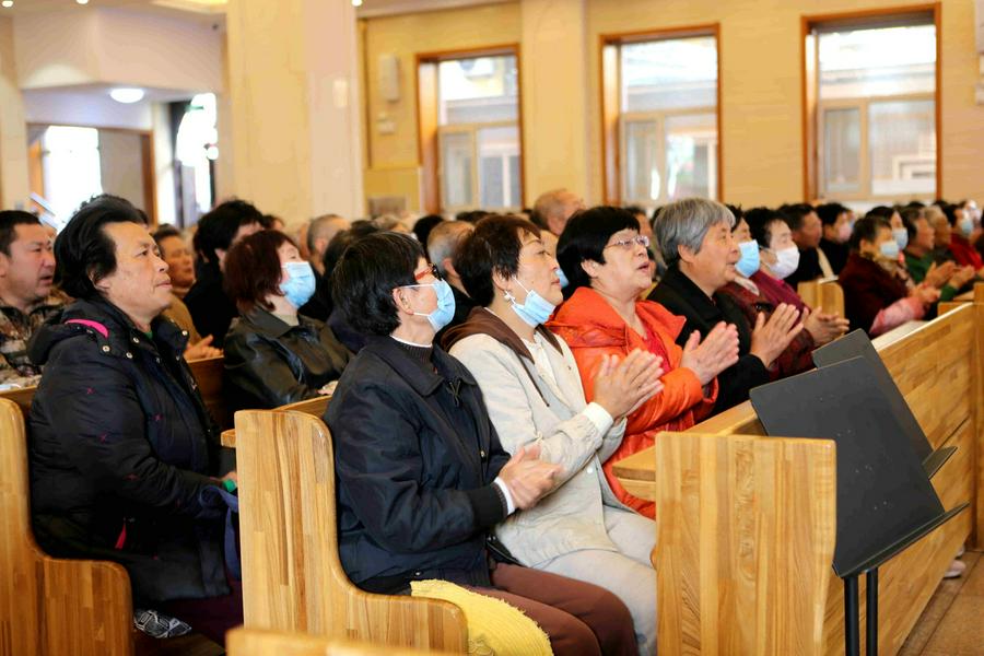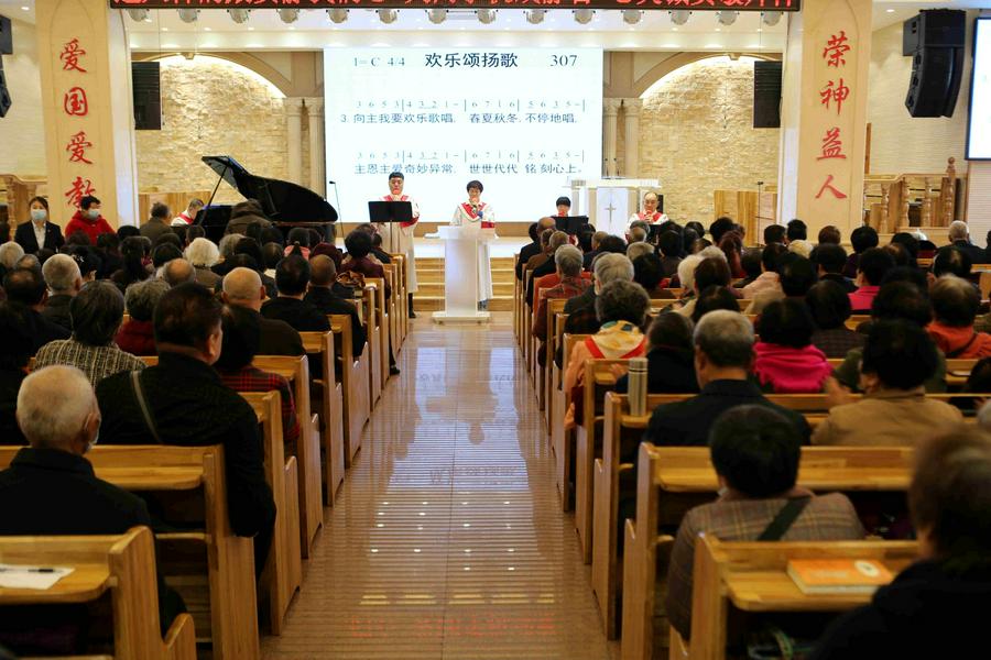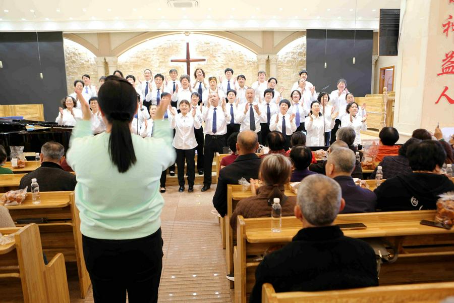 文化路教堂内座无虚席,信徒们身着整洁庄重和喜庆的衣裳,脸上洋溢着虔诚与喜悦,大家喜乐地不分彼此互致问候,共同构成了一个和谐而圣洁的信仰共同体。