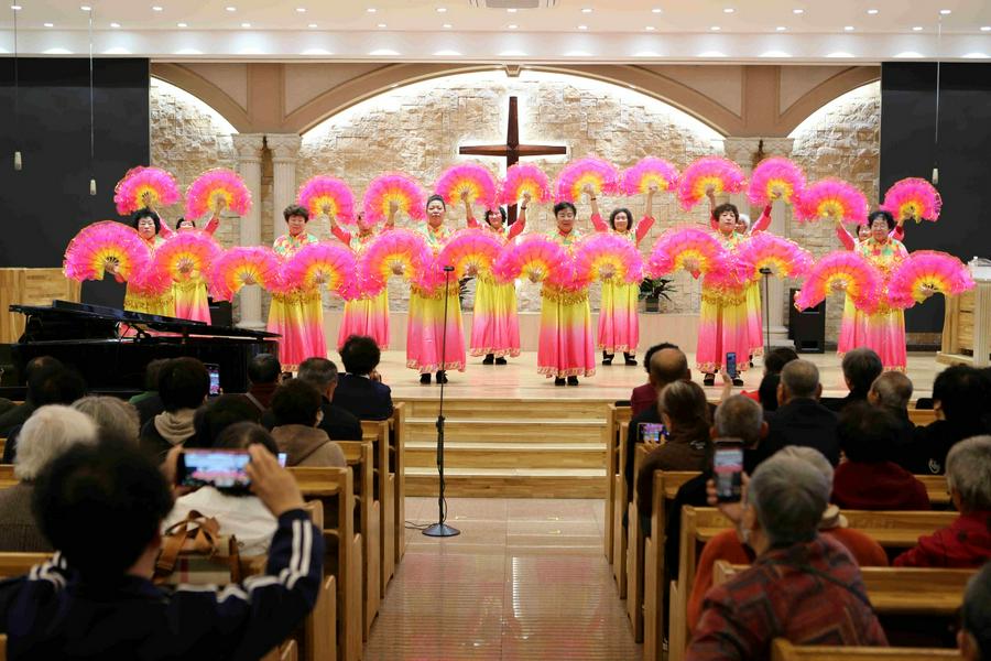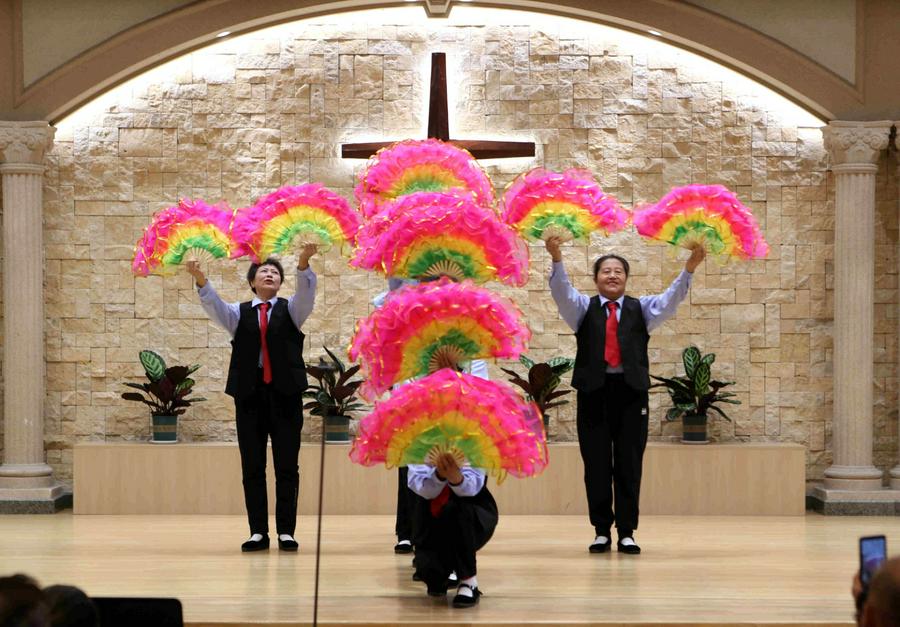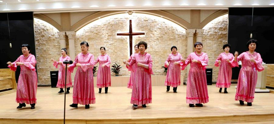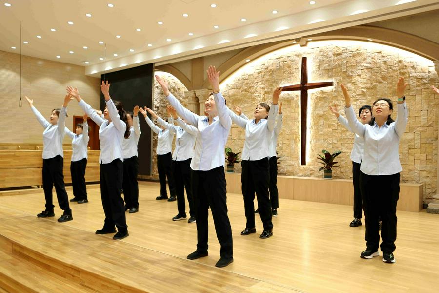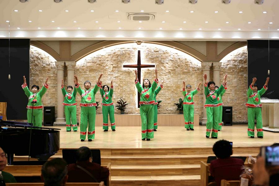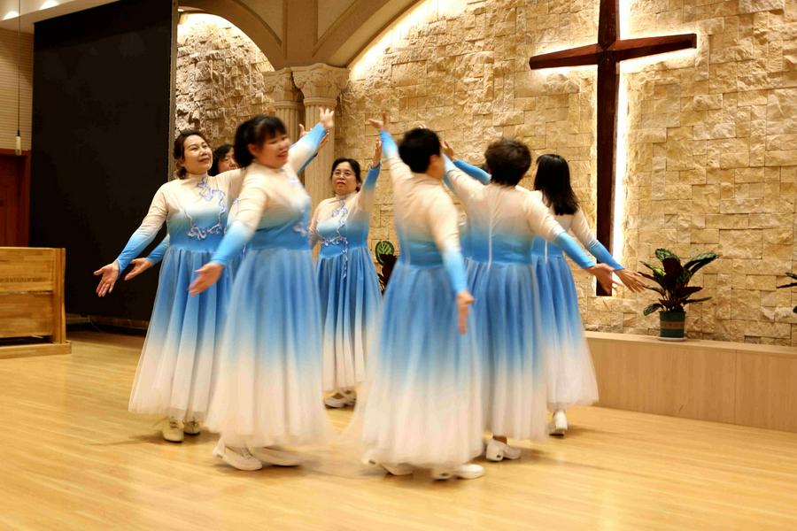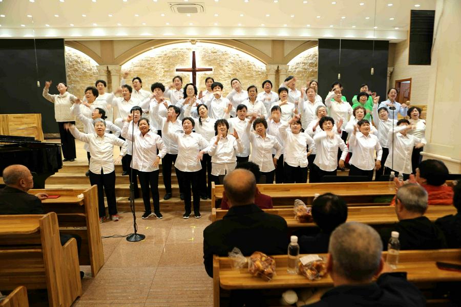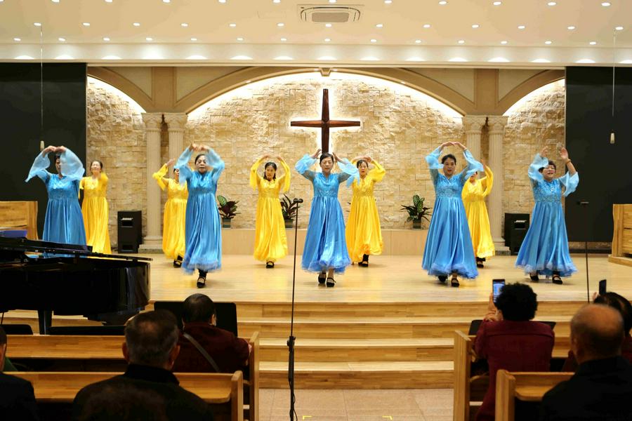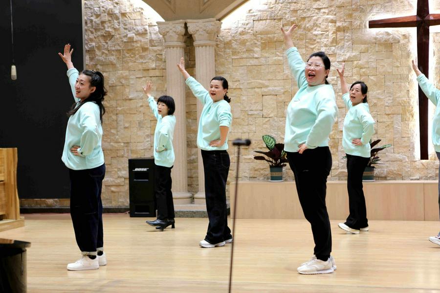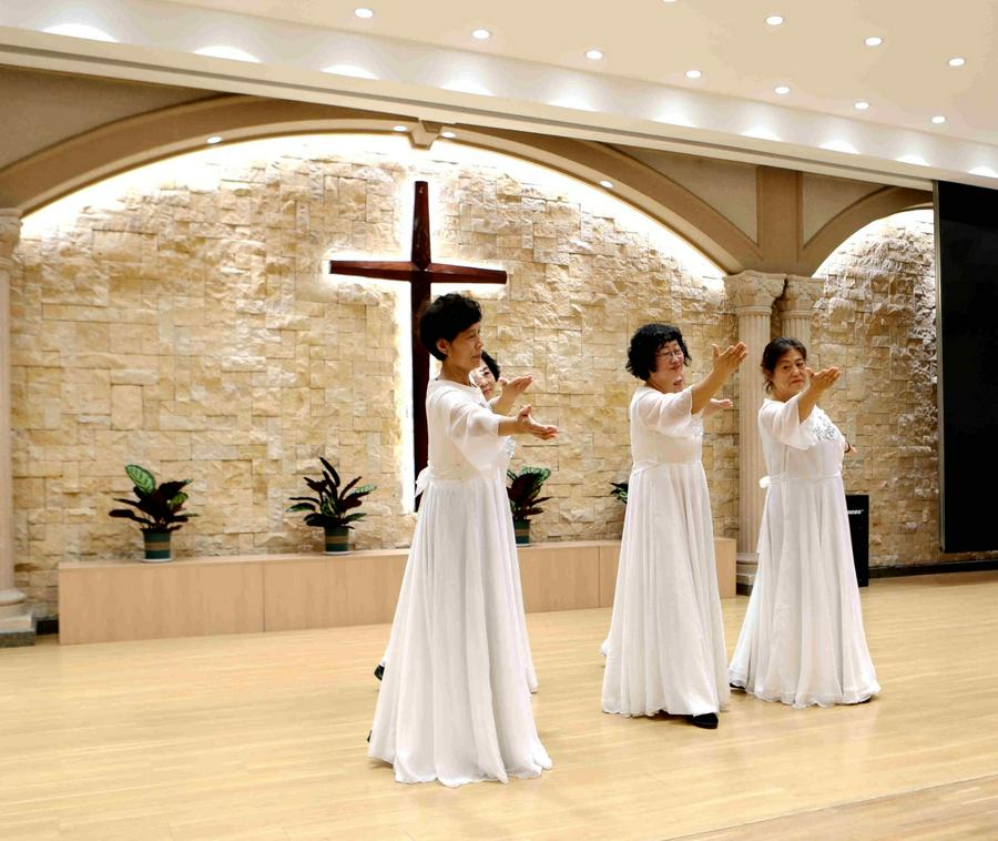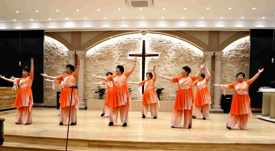 徐爱萍牧师证道结束后,今天的复活节进入敬拜赞美环节。歌声响起,那是一首首颂扬主复活的圣诗,质朴而深沉的旋律在教堂的穹顶下回荡,每一个音符都仿佛带着从十字架下传来的神圣力量,直击人心。舞蹈跳起来,无论是带有辽南地方风格的扇子舞,还是老年团契的、年轻人的律动,兄弟姊妹脸上洋溢着纯真的笑容。舞姿虽不华丽夺目,却充满了质朴的灵气,流露出对信仰的笃定和热爱,随着音乐的节奏,他们的心与神紧紧相连,舞动的身影成了最动人的赞美诗。每一个在场的人在这赞美歌声和舞蹈的敬拜赞美中,忘却尘世的纷扰与疲惫,全身心地沉浸在这恩主复活的神圣时刻。
