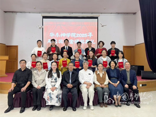 2025年4月23日,华东神学院举行“天启”奖学金颁奖典礼。华东神学院院长谢炳国牧师为获奖者颁奖。