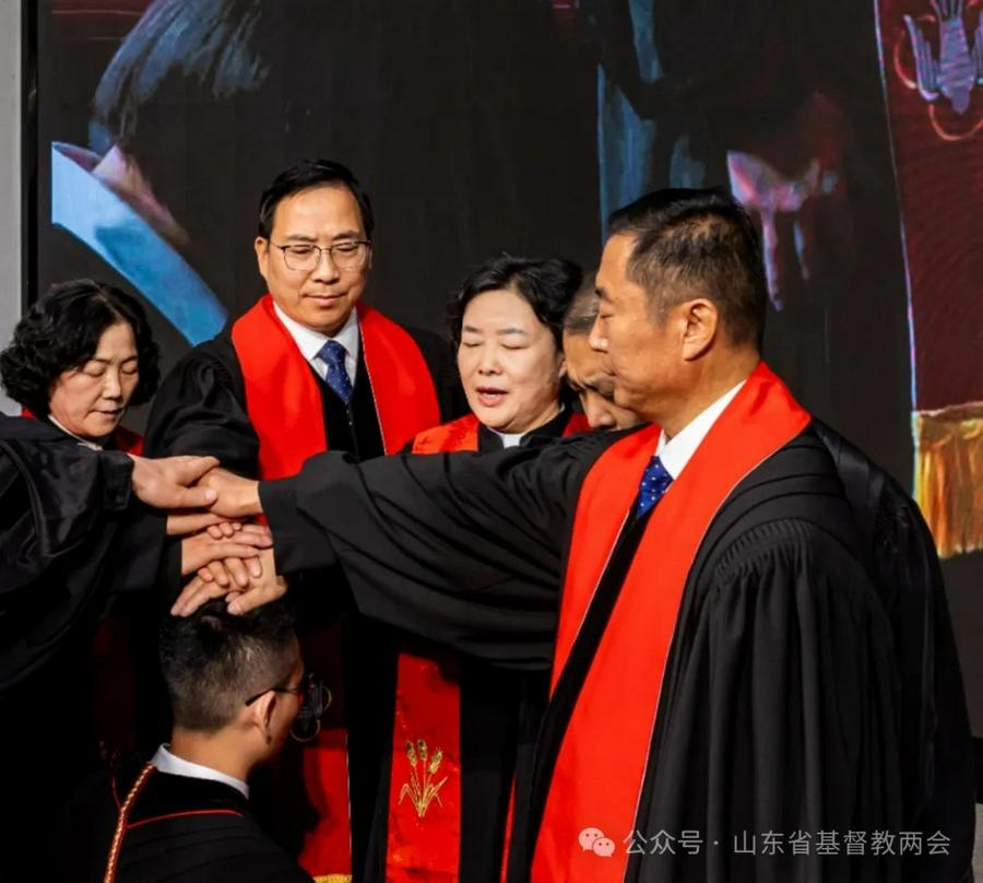 董美琴牧师对新按立的牧师、长老祝贺并劝勉大家始终秉持“爱国爱教、荣神益人”的宗旨,坚持党的领导,加强政治学习,积极引导教会与社会主义社会相适应;深化基督教中国化实践,结合自身牧养经验,把神学思想成果融入释经讲道,让信仰扎根于中华文化的沃土;坚持全面从严治教,加强自身管理和教风建设,努力成为信徒灵性与品格的榜样;效法基督牧养群羊,作合神心意的好管家,共同为山东教会健康传承贡献积极力量。