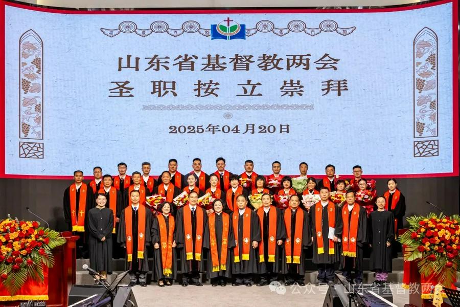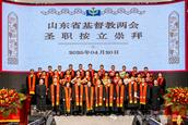 4月20日,山东省基督教两会在临沂市基督教两会中心教堂举行圣职按立典礼。临沂市委统战部副部长、民族宗教局局长沙兆武,省宗教事务联络中心科长张熙,临沂市委统战部民族宗教科科长杜雪峰出席典礼。圣职按立团由省基督教三自爱国运动委员会主任、山东神学院院长董美琴牧师,省基督教三自爱国运动委员会副主任、市基督教三自爱国运动委员会主任张建顺牧师,省基督教协会副会长王孟坤牧师,市基督教协会会长刘宗昌牧师等9位牧长组成,来自临沂、日照教会的24位同工被按立为牧师、长老。