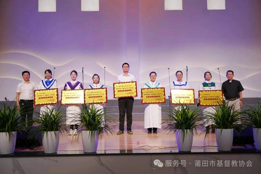 活动尾声,莆田市基督教三自爱国运动委员会主席朱益民牧师、莆田市基督教协会张金木会长,共同为七个参与交流的团队颁牌,以示表彰鼓励。交流会在莆田市基督教三自爱国运动委员会副秘书长杨洪霞牧师的祷告与朱益民牧师祝福声中落下帷幕。