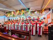 上午9:00,母亲节主日崇拜在候红娟姊妹主持下开始了。候姊妹面带笑容喜乐地向大家致以母亲节快乐的祝福和问候,然后为母亲节主日崇拜做了代祷,接着带领大家宣信了《使徒信经》。接下来开始了教会诗班登台献唱。只见诗班三十多位弟兄姊妹,身着白色圣衣依次分三排站在主台前,在柴菊香姊妹指挥下伴随着钢琴音乐,诗班弟兄姊妹满怀感恩喜乐放声献唱了《耶和华做王》《主你差遣我》两首赞美诗歌。柴姊妹的优秀指挥和诗班的精彩献唱,赢得了会众热烈掌声的称赞!