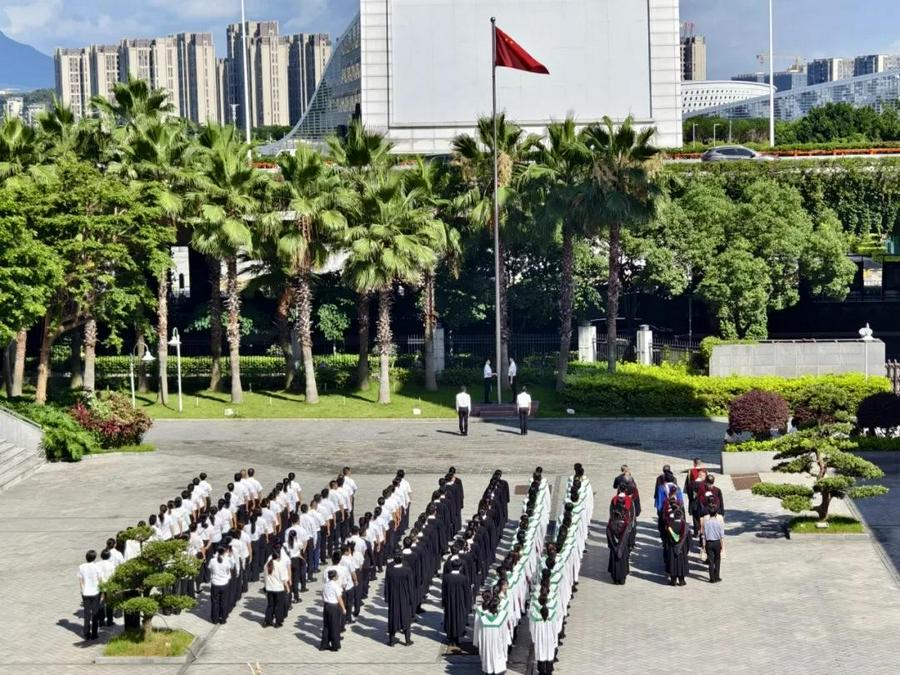 始于金秋,终于盛夏。2025年6月21日上午,福建神学院2025届毕业感恩崇拜暨毕业典礼在福神堂隆重举行,全院师生、部分毕业生家属及教会牧者、同工齐聚一堂,共同见证96位毕业生圆满毕业这一神圣时刻。在典礼开始之前,全院师生怀着崇敬与自豪,齐聚于此,举行庄严的升旗仪式。国旗飘扬,映照学子之心,国歌嘹亮,激荡前行力量。