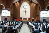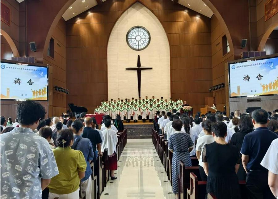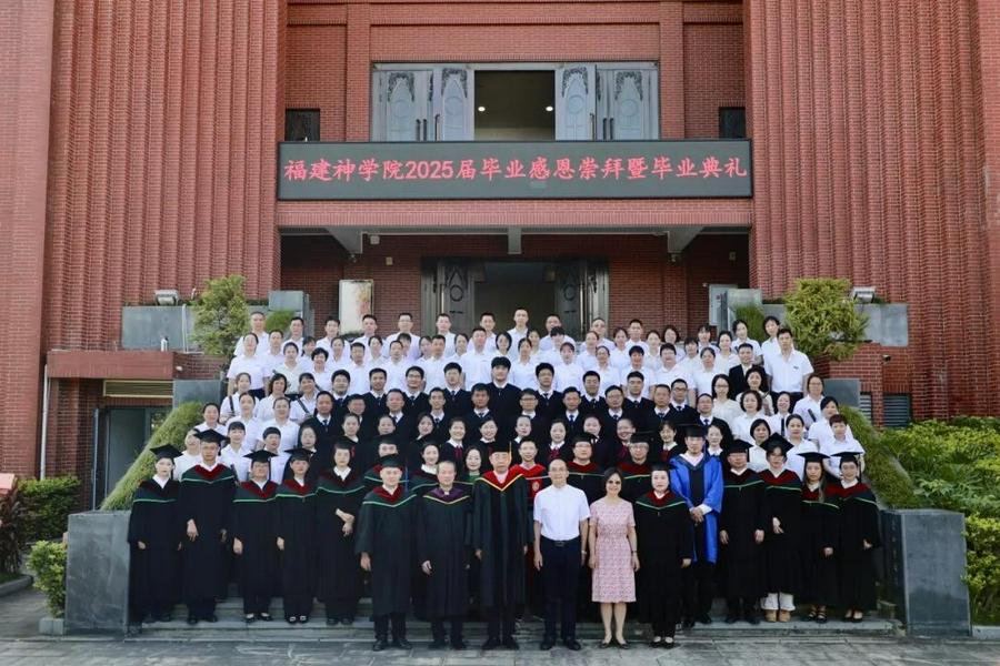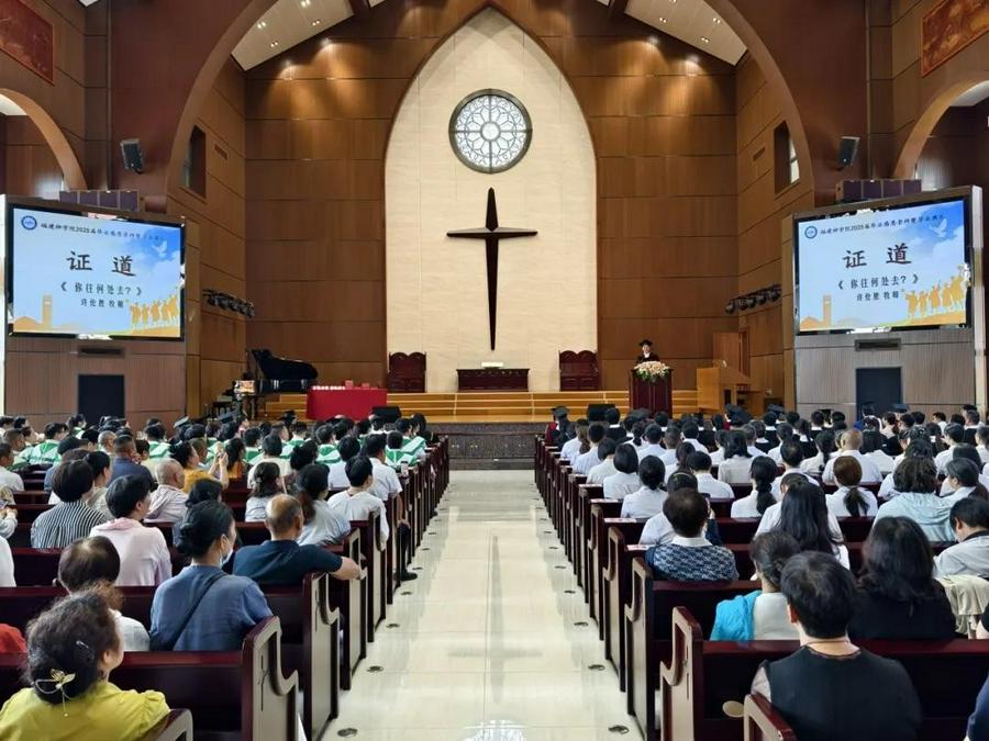 毕业崇拜,由福建省基督教协会副会长兼总干事、福建神学院副院长林德来牧师主礼,福建省基督教协会驻会副会长、福建神学院副院长张纪有牧师带领祷告,福建省基督教三自爱国运动委员会副主席兼秘书长、福建神学院副院长陈赠平同工诵读经训。