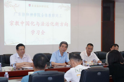 2025年7月1日下午,广东协和神学院召开全体同工会,专题学习宗教中国化与法治化新方向。会议由广东省基督教协会会长兼广东协和神学院院长蔡博生牧师主持,全体教师、行政后勤人员及协和堂、属下聚会点同工参加会议。