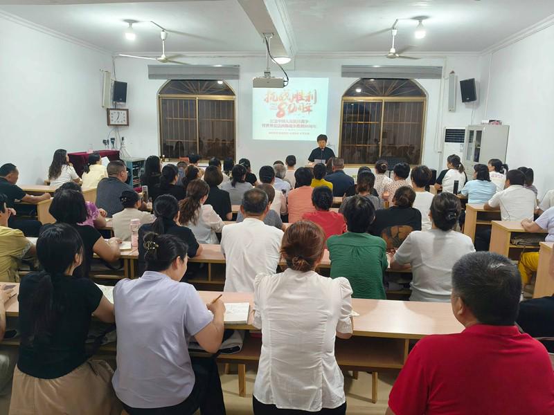 八十年前中国人民经过多年艰苦卓绝的抗日战争,无数军民身先士卒浴血奋战,最终取得了抗战的伟大胜利,为世界反法西斯战争的胜利做出了巨大贡献。昆山市基督教界时刻铭记历史。在中国共产党的领导下,中国人民取得了抗日战争的伟大胜利;现在是国泰民安,人民生活幸福安康,这都离不开中国共产党的正确领导。