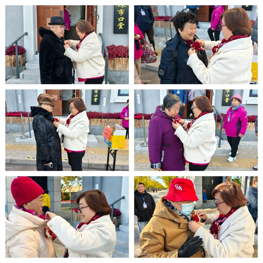 北京市基督教会珠市口堂于2025年10月26日上午,举办了一场充满温情与敬意的敬老礼拜。清晨的秋风带着些许凉意,却丝毫未减教堂内外洋溢的暖意。主任牧师李永红早早就站在教堂门口,迎接前来参加聚会的每一位弟兄姊妹并为七十岁以上的老人佩戴上象征祝福与敬意的胸花。