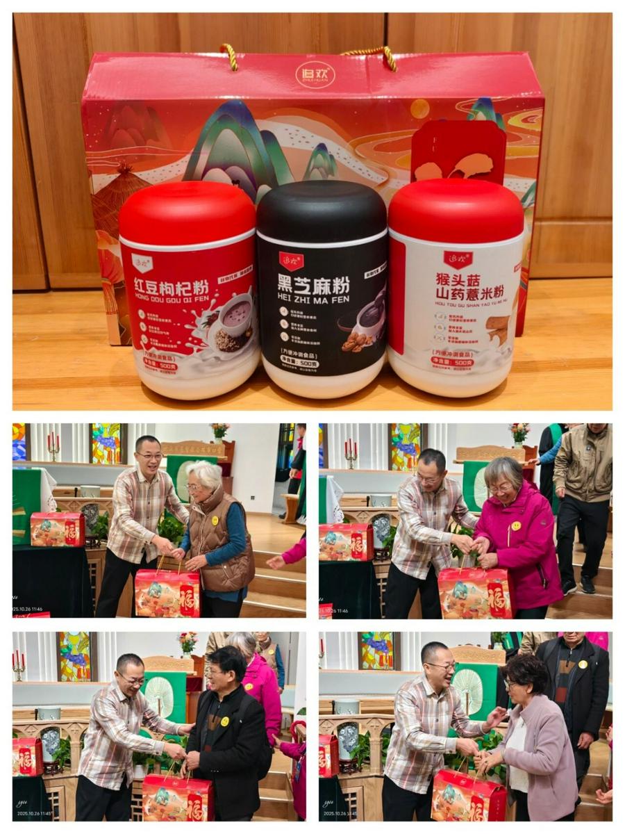 礼拜中,牧师结合圣经教导与中国孝道文化,劝勉弟兄姊妹。教会为前来聚会的七十岁以上的老人预备了营养五谷粉礼盒,由牧师亲手送到前来参加聚会的130余位老人手中,并为他们祝福。