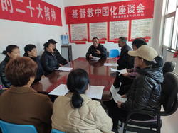 2025年10月26日上午,吕梁市临县基督教会组织教职人员和信徒代表举行推进基督教中国化座谈会。康洁胜牧师领读了党的二十届四中全会精神,学习了《宗教教职人员网络行为规范》和省基督教两会“学法规 守戒律 重修为 树形象”教育活动的通知。
