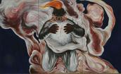 《行过死荫幽谷》(英德)身穿白衣的新郎手捧红玫瑰带着新娘行过死荫幽谷,带给人的是光明和盼望。英德老师分享说:“我们都知道现在是主耶稣快来的时候,这个时候也是让人感到最艰难的时候,特别盼望教会一直这样跟随耶稣行过死荫幽谷。这幅画是一系列,共四张,第一张是行过死荫幽谷,有些沉重;第二张新娘会奔跑起来,表达被提的那一瞬间,会轻松一点;第三张是又被提升了一点;第四张是与主的相遇,四幅画我已构思好了,我想这是我真实的感受,也是我信仰走过的路程。”