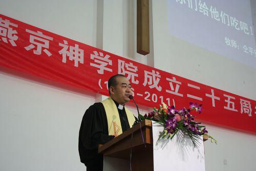 开幕礼拜中,1986级学生,现任青海省两会主席兼会长的仝平安牧师引用《马可福音》6章中耶稣喂饱五千人的神迹分享劝勉。