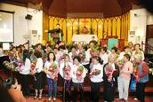 11日的第三堂主日崇拜中,教师们向主献上诗歌《奉献身心歌》,再一次表达了自己愿意一生奉献于主、跟随主的心志。献诗过后,主日学的孩子们为每一位老师献上了一束鲜花。