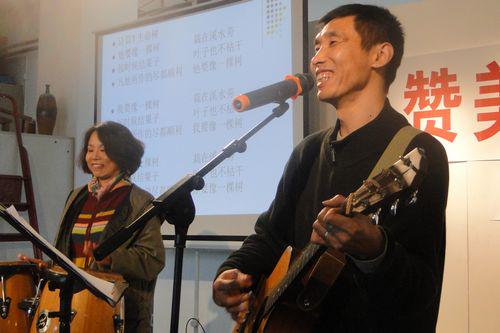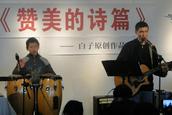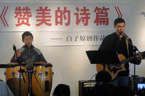 3月24日,基督徒艺术家白子弟兄在北京知名的艺术之乡宋庄举办专场原创赞美诗歌敬拜分享会,与他同台敬拜的除了白子的好友,还有他的儿子亦随同击鼓伴奏,全场会众在深情的赞美诗歌中体会着神丰盛的恩宠。