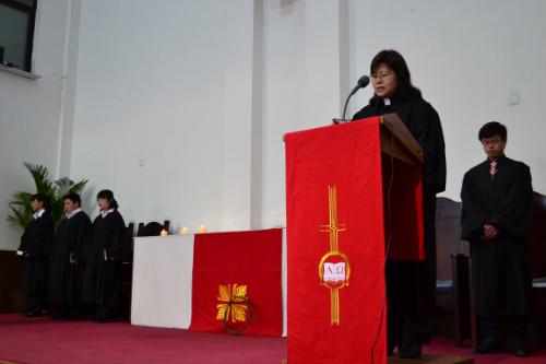 受难日崇拜在柳东仙牧师主持下开始。神学院师生及参加崇拜的附近居民信徒,一同默想救主十字架的历程。整场崇拜在庄严的管风琴声、读经、赞美歌诗中有序地进行,默想内容从客西马尼园到主被兵丁扎肋旁为止。