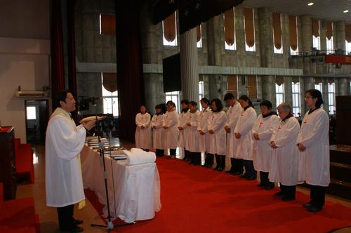 证道结束后,程宝山牧师举行圣餐,去纪念爱我们的主耶稣。