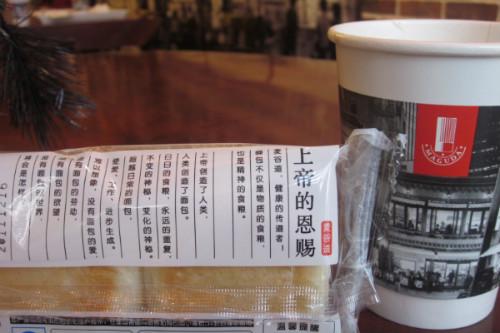 同样一段传递上帝恩赐的诗话,也刻印在麦谷道每件产品的包装上,面包传道谁手中,这段诗也传到每个品尝面包的人那里。麦谷道的每个包装,都会印上融入信仰元素的话语,希望来到这里的客人,或许能够因为包装袋上的一句话而改变一生。