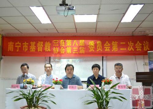 2012年4月16日,南宁市基督教三自八届、基协三届委员会第二次全体会议在南宁市共和路基督教堂隆重召开。8时30分,会议在市基督教两会秘书长兼总干事梅山阁传道的主持下准时开幕,南宁市委统战部副部长、南宁市宗教局局长甘强忠到会祝贺并作重要讲话。