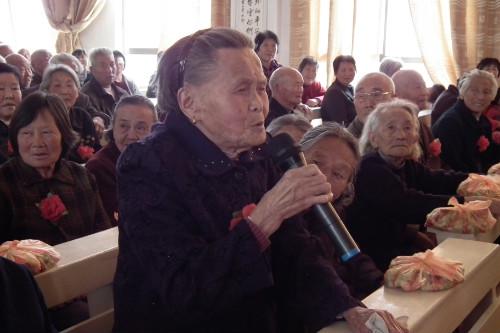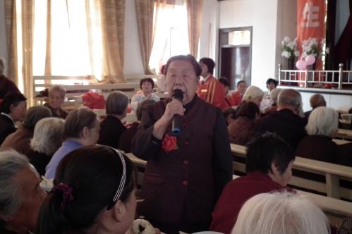 在管乐赞美、诗班献诗结束后,教会郭彩云姊妹证道,主要内容是勉励老人们要常常喜乐、不住的祷告、凡事谢恩。老年是上帝特别的恩典,得来不易,所以应该为拥有长寿而感谢,心满意足,充满快乐的享受老年。郭姊妹勉励老年人在年老的时候仍要多结果子,要“满了汁浆而常发青”。