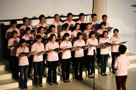 为庆祝福耀玻璃厂约珥团契建立一周年,2012年4月26日,福建省福州基督教福华堂职场团契在宏路教会举办“为主发光”敬拜赞美会。