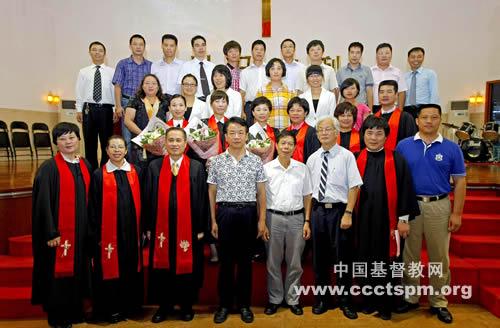 按牧典礼由省基督教协会会长梁明牧师、省基督教三自爱国会副主席樊宏恩牧师、市基督教三自爱国会主席樊巧儿牧师、市基督教教务委员会会长张秀红牧师、市基督教三自爱国会副主席李间想牧师、市基督教教务委员会副会长黄丽凤牧师、陈文远牧师七位牧师共同襄礼并组成按立牧师团参与按手。