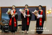 典礼神圣、庄重,气氛感人、热烈,市基督教会太平堂、良都堂、迦南堂、员峰堂诗班共同组建了联合诗班献唱,省基督教三自爱国会陈顺鹏主席、市民族宗教事务局沈小龙副局长、香港上帝五旬节教会余祖抗牧师莅临典礼并致辞。