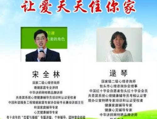 培训特邀国家二级心理咨询师、中国和谐服务工程婚姻专家协会秘书长兼培训部主任宋全林;国家二级心理咨询师、中华讲师网特聘品牌讲师逯琴,进行全方位的婚姻家庭及青年心里健康培训。