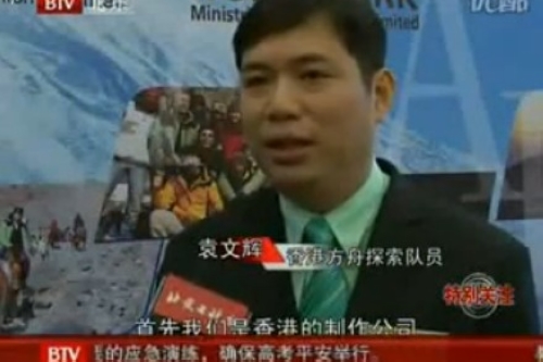北京电视台报道挪亚方舟不是传说,图为采访香港影音使团总干事袁文辉(视频截图)近日,视频《北京电视台宣布:挪亚方舟不是传说》在网络上被转载得很火,视频结合了北京电视台“挪亚方舟不是传说的”报道与电影《诺亚方舟》的部分场景,很具警世和传福音的效果。著名婚恋专家袁大同老师评论说这是一个值得转起来让大家都看看的视频。