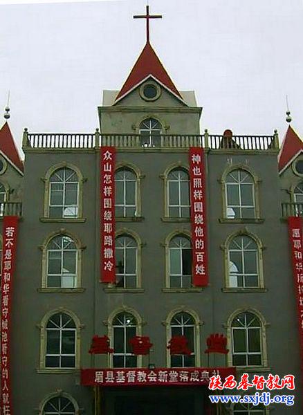眉县基督教堂于2009年11月23日拆掉旧堂,2010年4月20日动工新建,用近三年时间,在上帝的祝福之中落成。教堂和前面综合楼建筑面积2300平方米,总投资290多万,从仅有10万元开始到用了290多万竣工,期间的困难是难以想象的。今日新堂落成,这一切都是神的恩典,愿将荣耀归给我们的上帝!